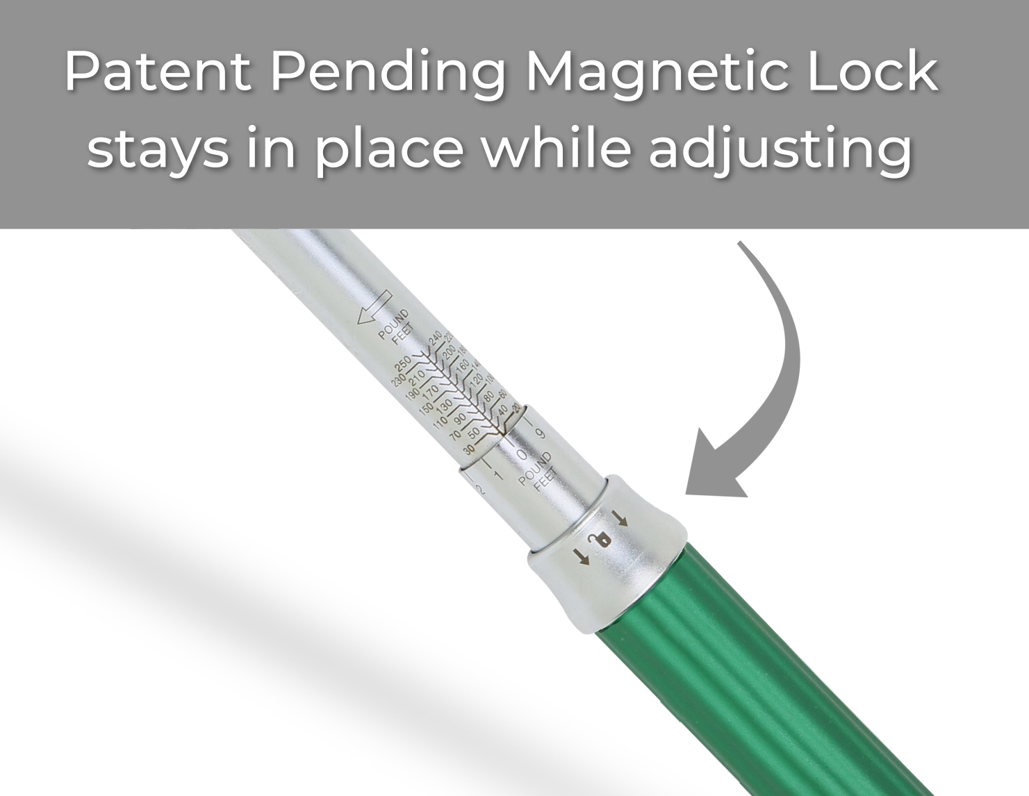The patent-pending magnetic lock system secures your selected torque setting. By preventing accidental changes during operation, it ensures that the wrench consistently releases or clicks at the preset value, offering added safety and precision.