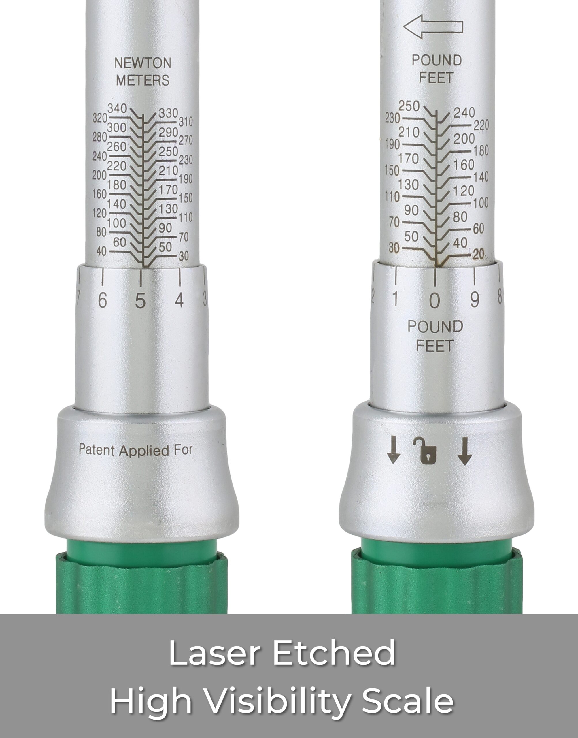 - Dual, English and Metric scales are easier to read than on most competitive wrenches, reducing possible setting errors.