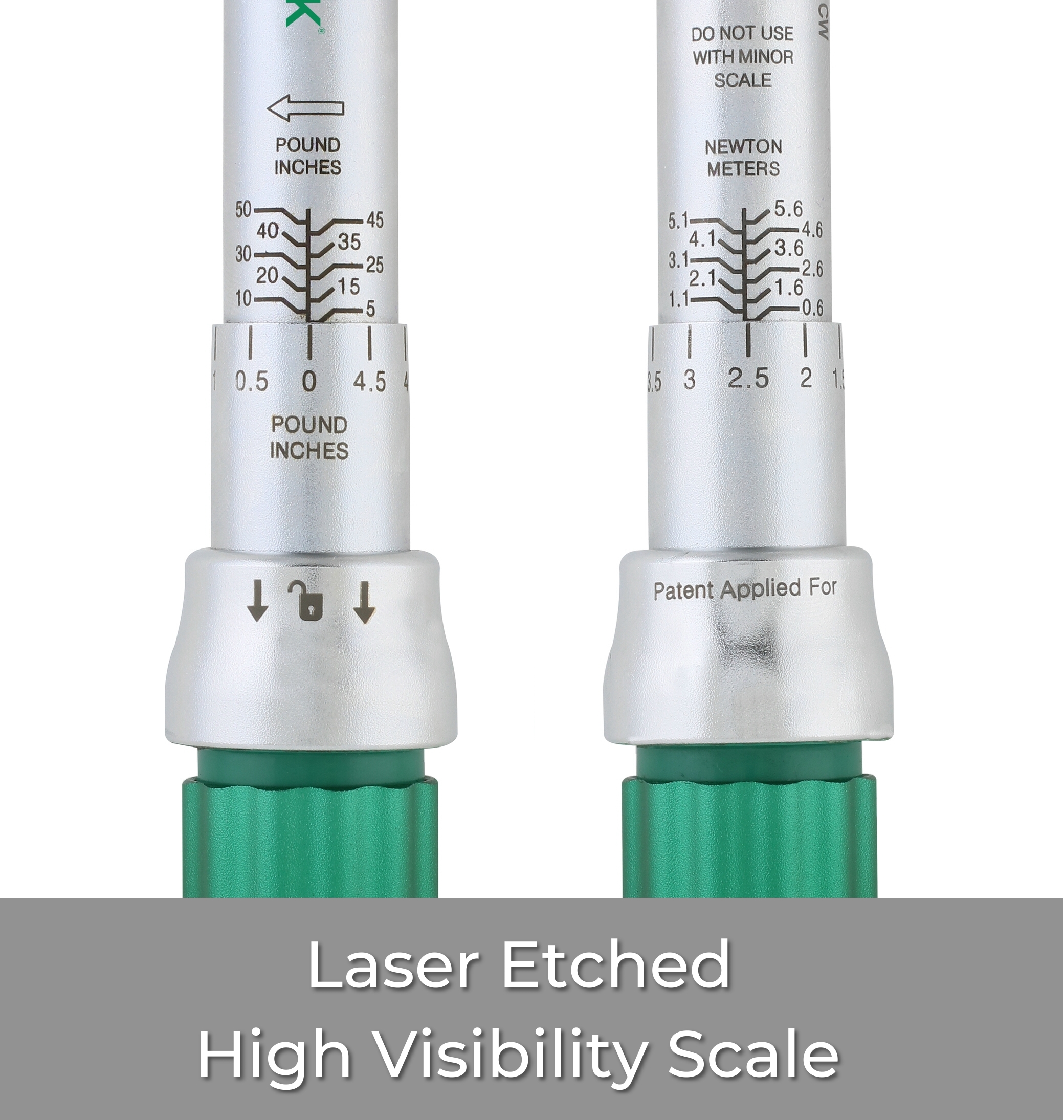 - Dual, English and Metric scales are easier to read than on most competitive wrenches, reducing possible setting errors.