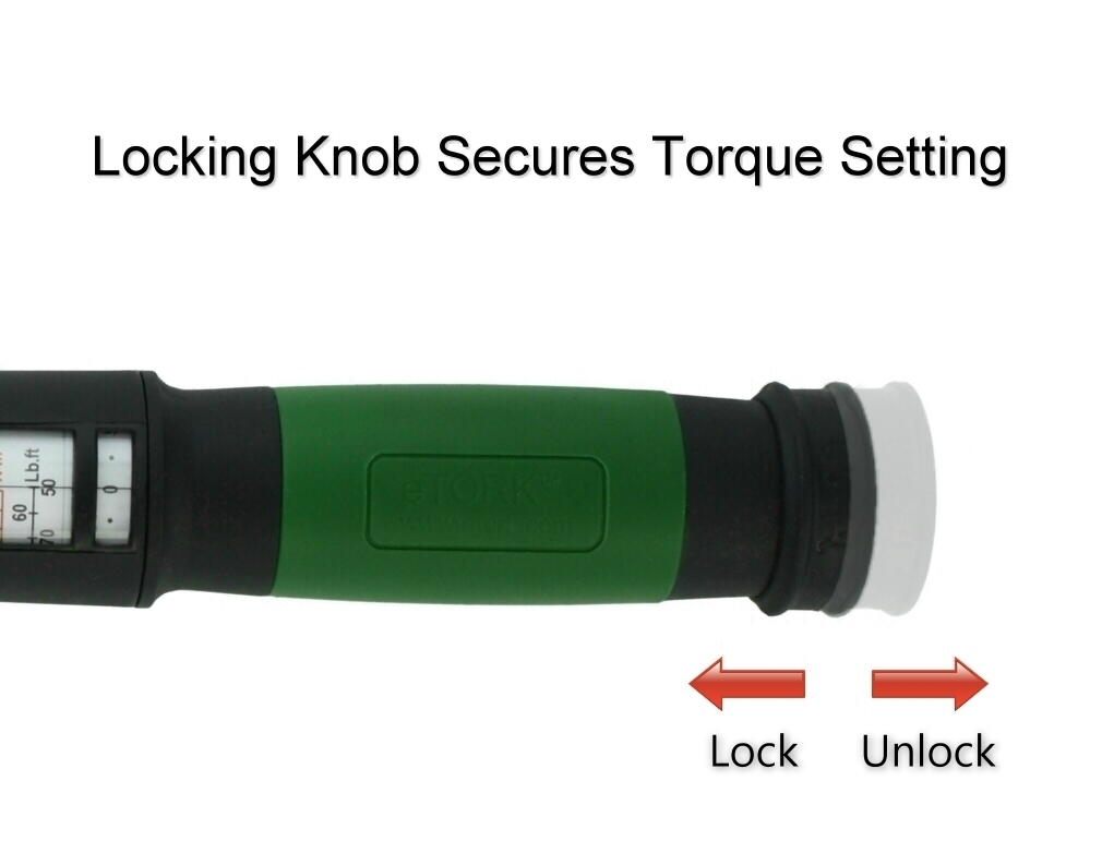 - Locking knob secures selected torque setting from accidental changes. Torque setting is done by pulling large locking knob out and turning the handle.
